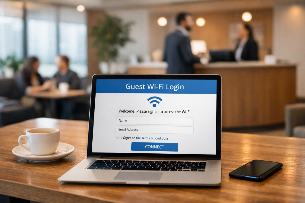 A professional captive portal, similar to those used by hotels or conference centers, provides a more secure option. Guests can receive temporary access codes, authenticate through a simple verification step, or connect for a limited time. Each session is controlled and time-bound.